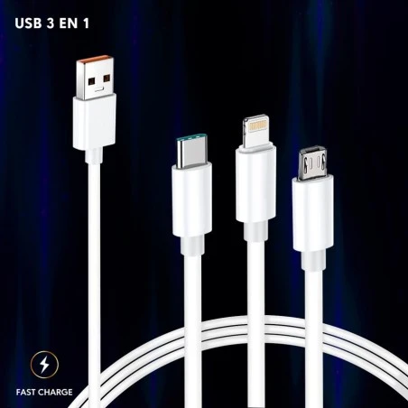 Cable 3 en 1 Micro USB, USB tipo C, Lightning a USB