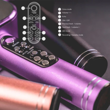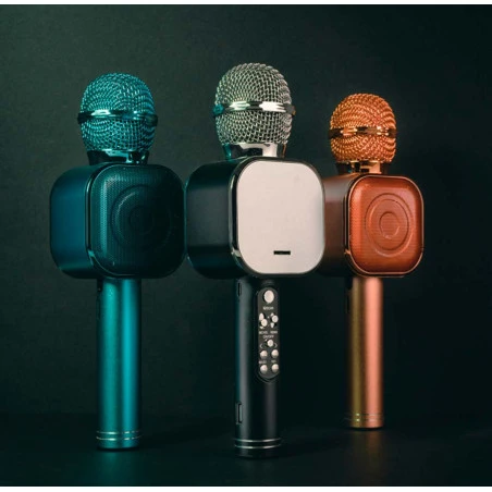 É um microfone multifuncional, podes utilizá-lo como altifalante para distorcer ou aumentar o volume tua voz de forma fácil e instantânea. Além disso, tem outras funções tais como rádio FM, podes gravar as suas canções, tirar selfies e funciona como dispositivo USB.